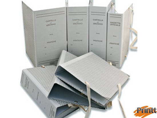 CARTONE ACCOPPIATO 1,8 MM. RIVESTITO ESTERNAMENTE IN CARTA STAMPATA AD 1 COLORE GR. 100/115 MQ. RISGUARDA INTERNA IN CARTA BIANCA. LACCI IN TELA: LARGHEZZA 15 MM. LUNGHEZZA 260 MM. SALDAMENTE FISSATI TRAMITE OCCHIELLO METALLICO ALLA STRUTTURA SU TRE LATI. LACCI RIPASSATI ALL’ESTERNO PER IMMEDIATO E CORRETTO UTILIZZO. FORMATO UTILE H35XL25CM.